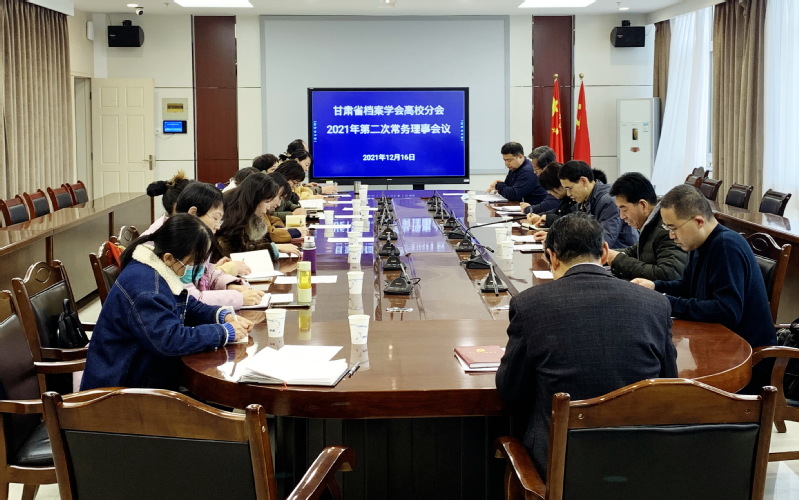 2021年12月16日上午,甘肃省档案学会高校分会在甘肃政法大学召开了2021年第二次常务理事会议,安排了分会工作,审议通过了调整后的甘肃省档案学会高校分会六届理事会机构人员名单。中共甘肃省委办公厅(甘肃省档案局)经济科技处郑艳虹副处长到会指导。全体常务理事及各内设机构工作部门成员参会,受理事长兰州大学陈文江教授委托,会议由副理事长兼秘书长、西北师范大学博物馆馆长邵青山主持。